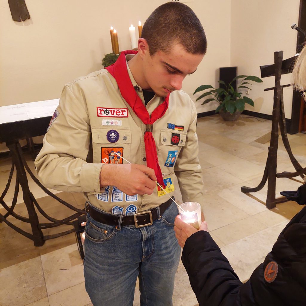 Auch in diesem Jahr haben wir am 3. Adventssonntag das Friedenslicht aus Bethlehem in Aachen abgeholt. Dort fand in der Kirche Heilig Geist ein Ökumenischer Aussendungsgottesdienst unter dem diesjährigen Motto „„Vielfalt leben – Zukunft gestalten“ statt.